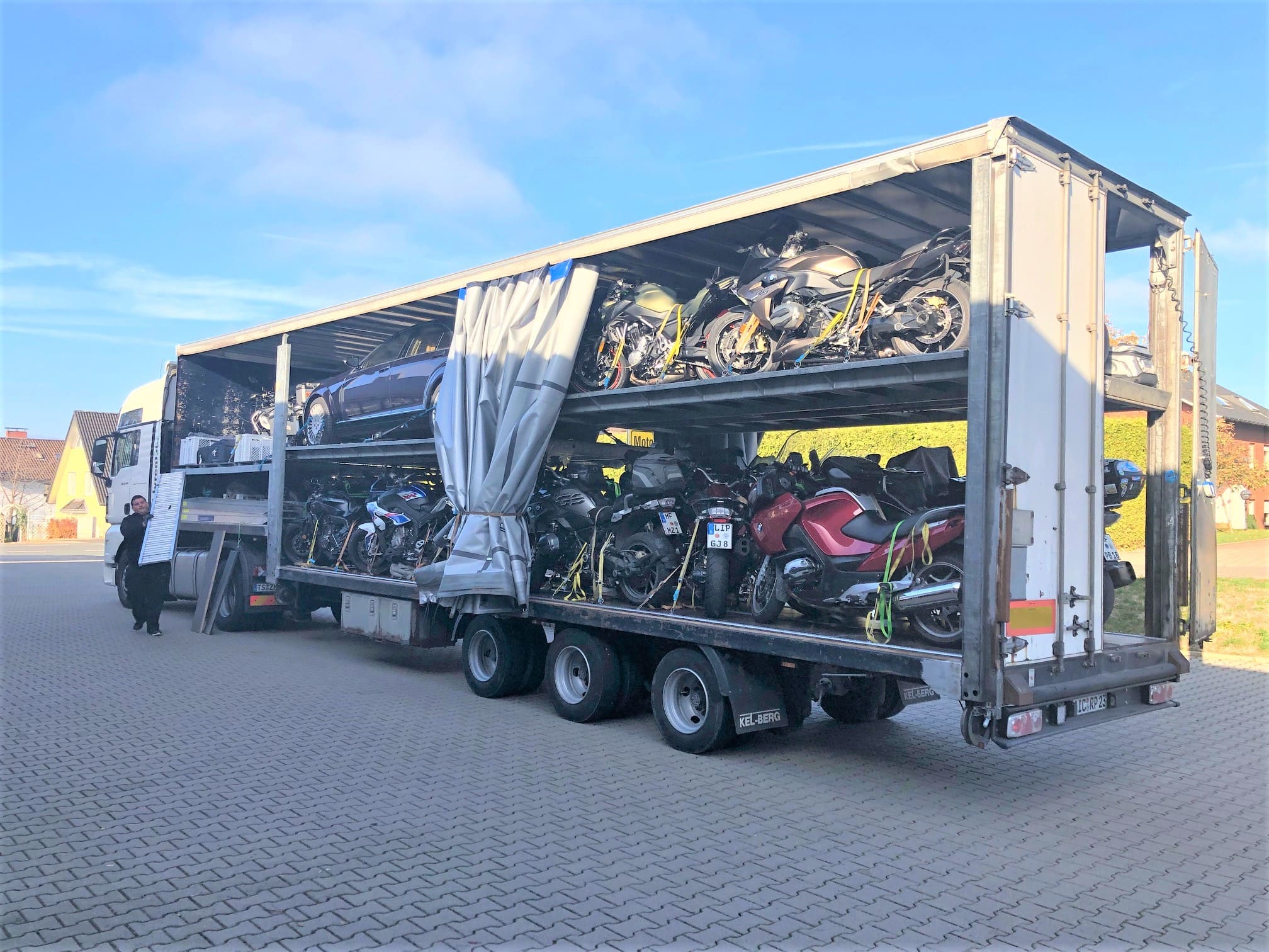 Wir transportieren immer in geschlossenen Fahrzeugen, damit Ihre Motorräder so ankommen wie sie uns übergeben wurden.
